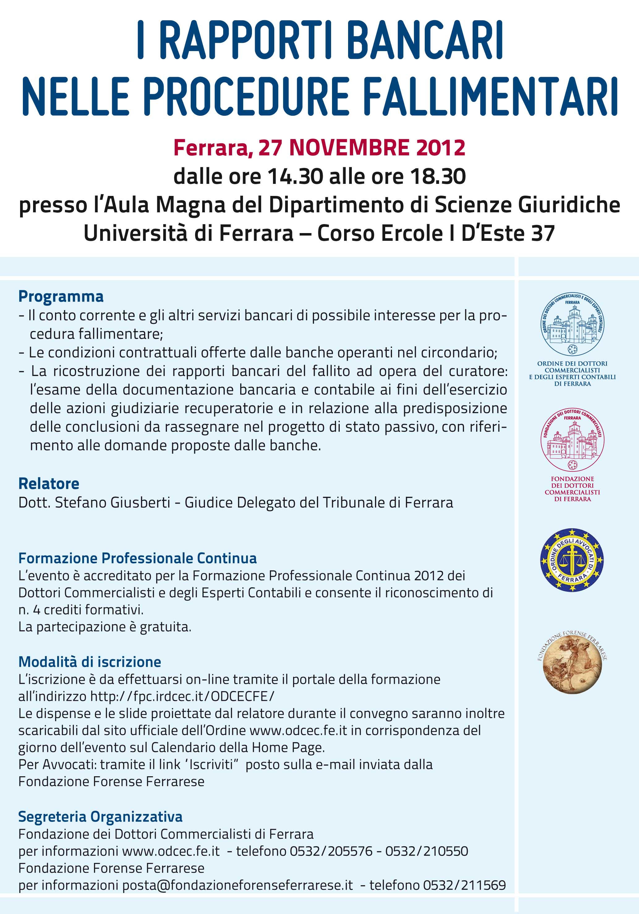Segreteria organizzativa: Fondazione dei Dottori Commercialisti di Ferrara